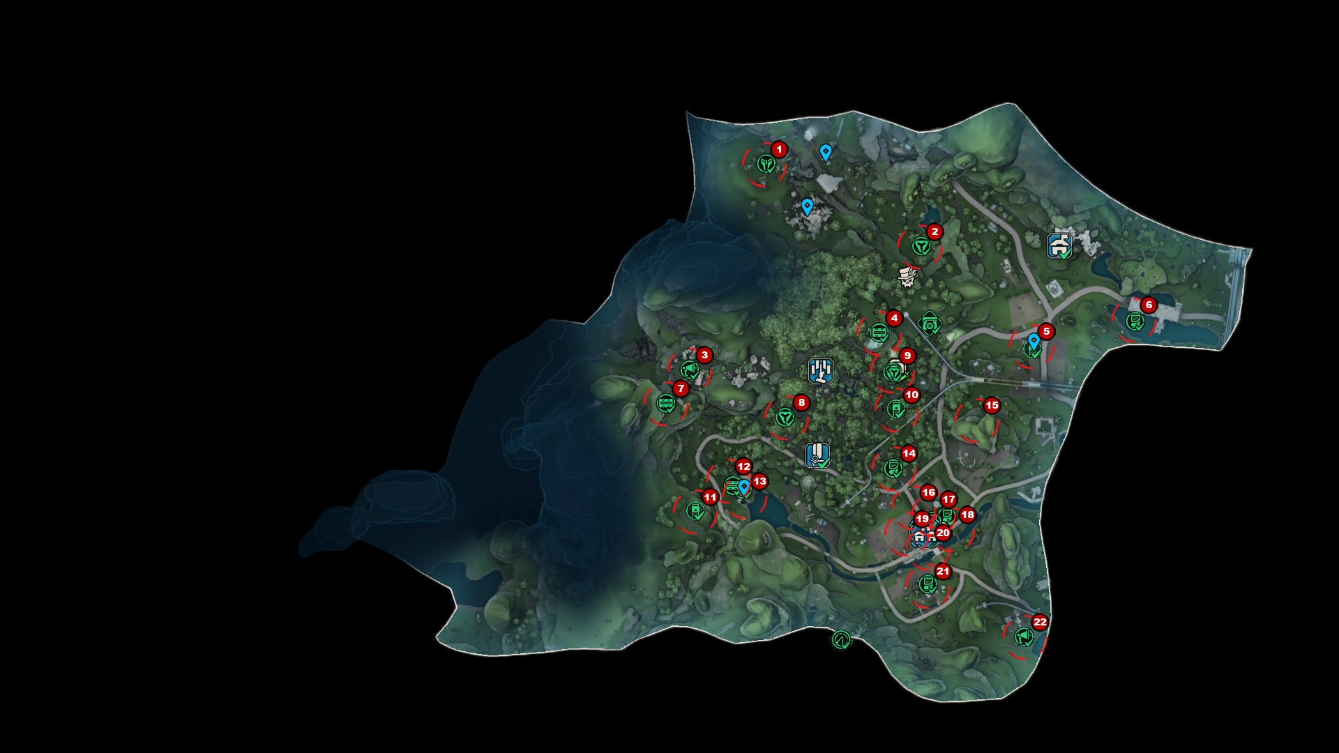 Die Nummern auf der Karte entsprechen der Nummerierung in der Liste darunter; dort findest du die jeweiligen Erklärungen und Links.