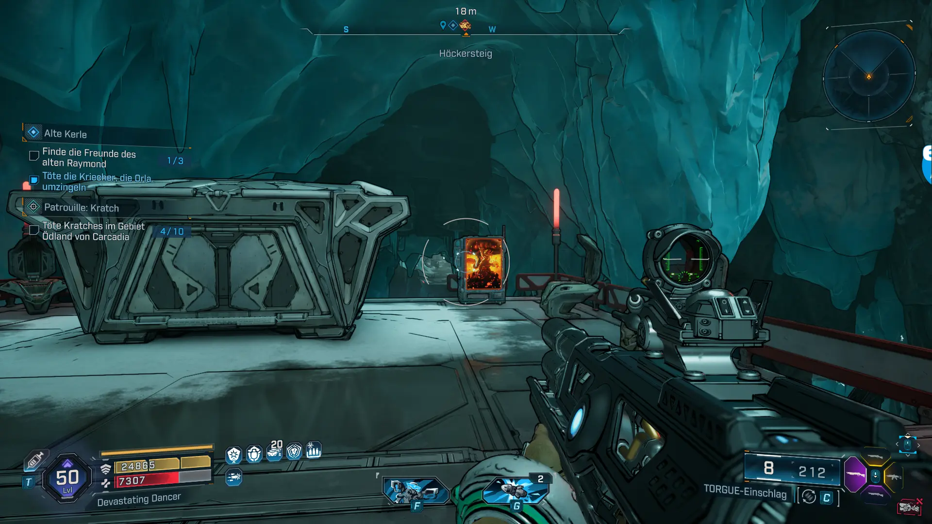 Schnellreise zum Ordenssilo Der Reliquienschrein und dann der Karte auf dem Bild nördlich Richtung Verlassene Buddler-Mine Flüsterer-Schlund folgen.