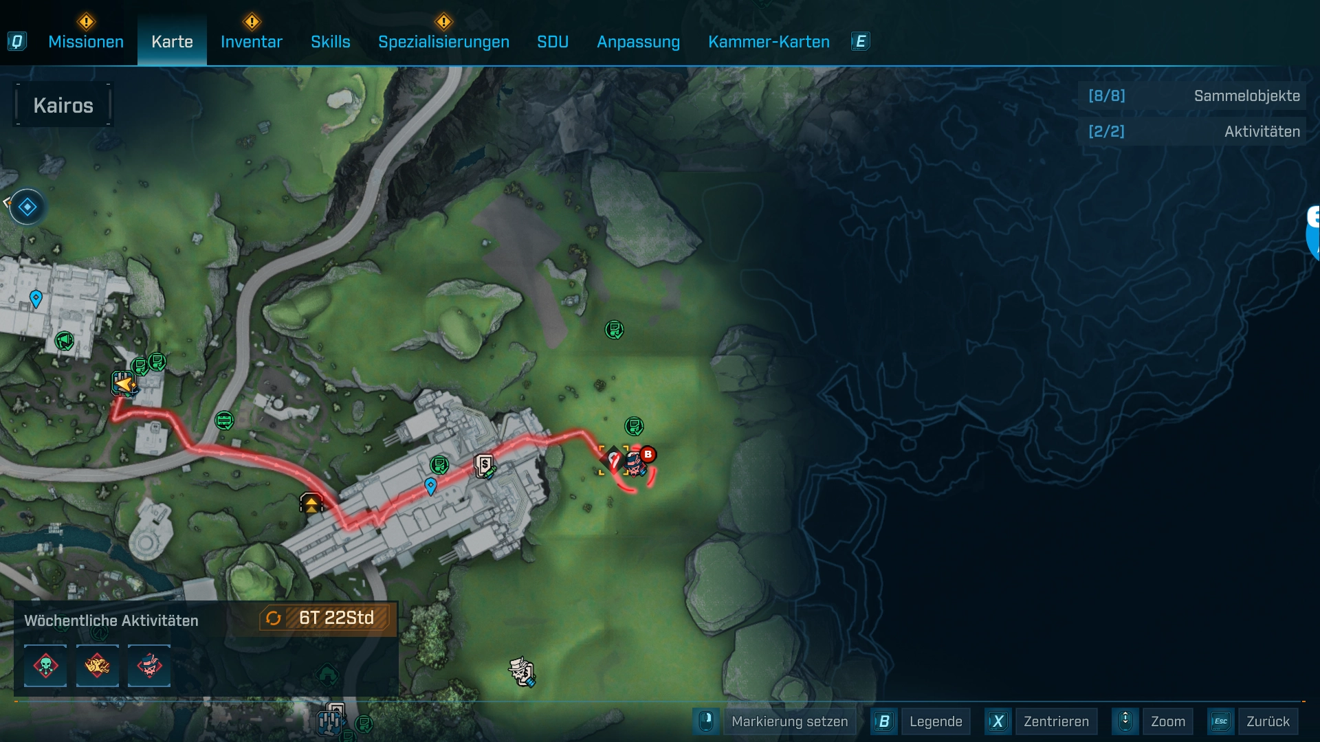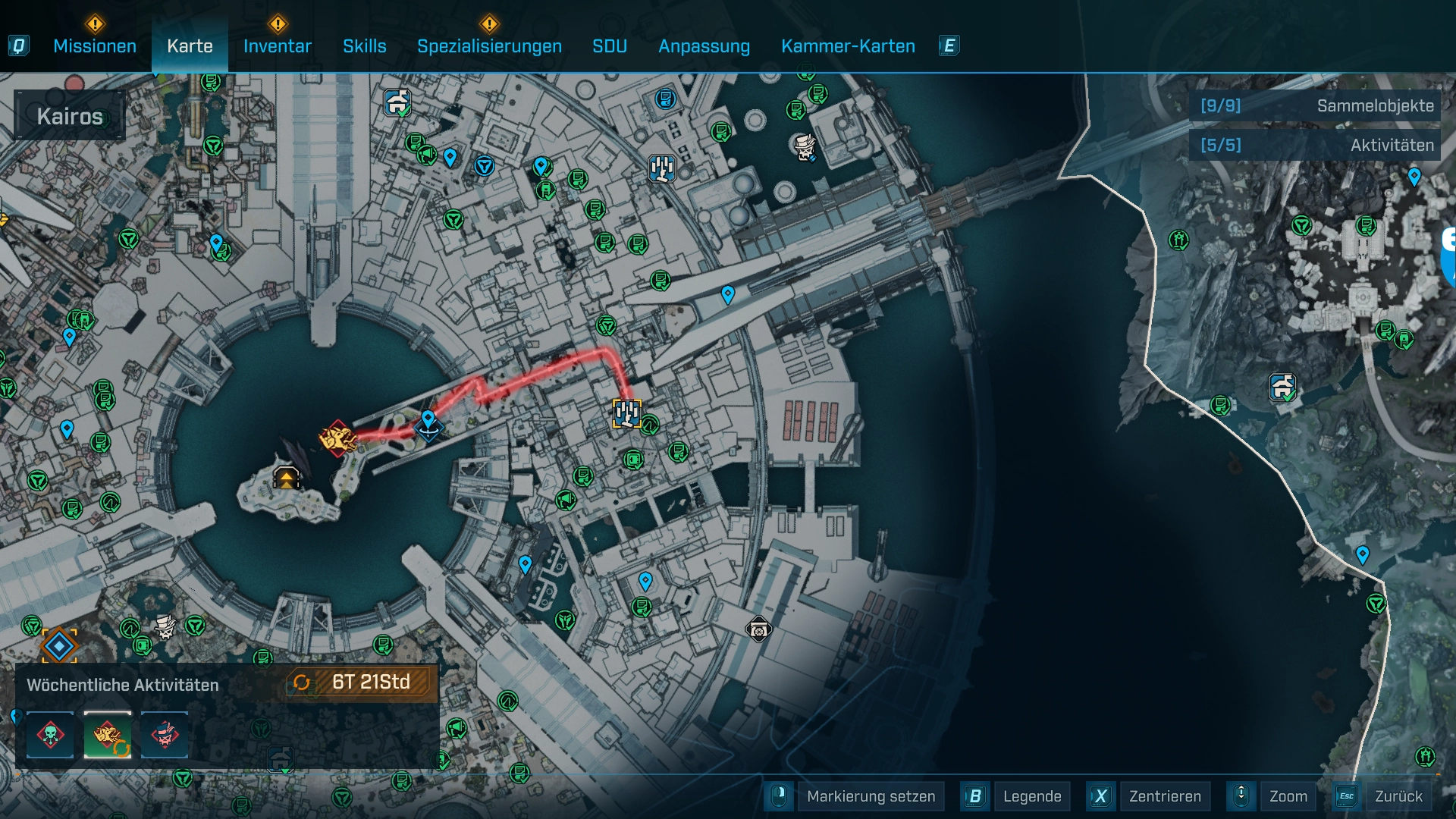 Eine wiederholbare Story-Mission mit Elite-Gegnern, wöchentlichen Modifikationen der Gegner und einem garantierten Legendären Item am Ende. Ideal für Solo & Koop — erwarte intensive Gefechte und variierende Loot-Rolls. Die Wildcard Mission kannst du starten und sehen welche Modifikationen aktiv sind, kannst du, wenn du auf die Karte klickst und unten links über das Symbol der wöchtenlichen Aktivitäten hoverst. Dort kannst du dann „T“ drücken und die Mission starten.